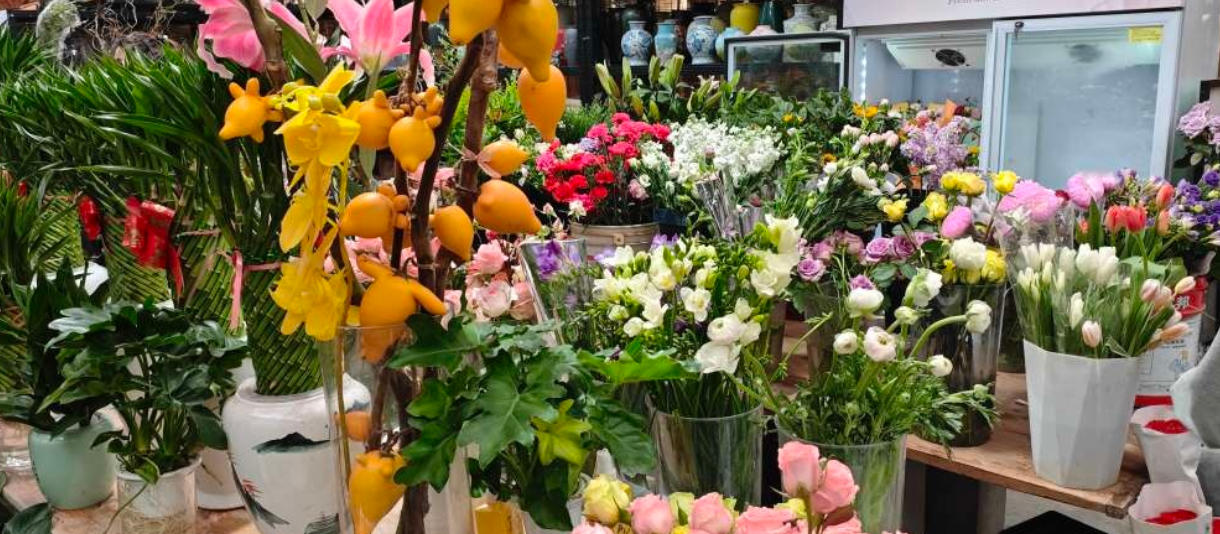 长乐花卉市场人山人海春意盎然
