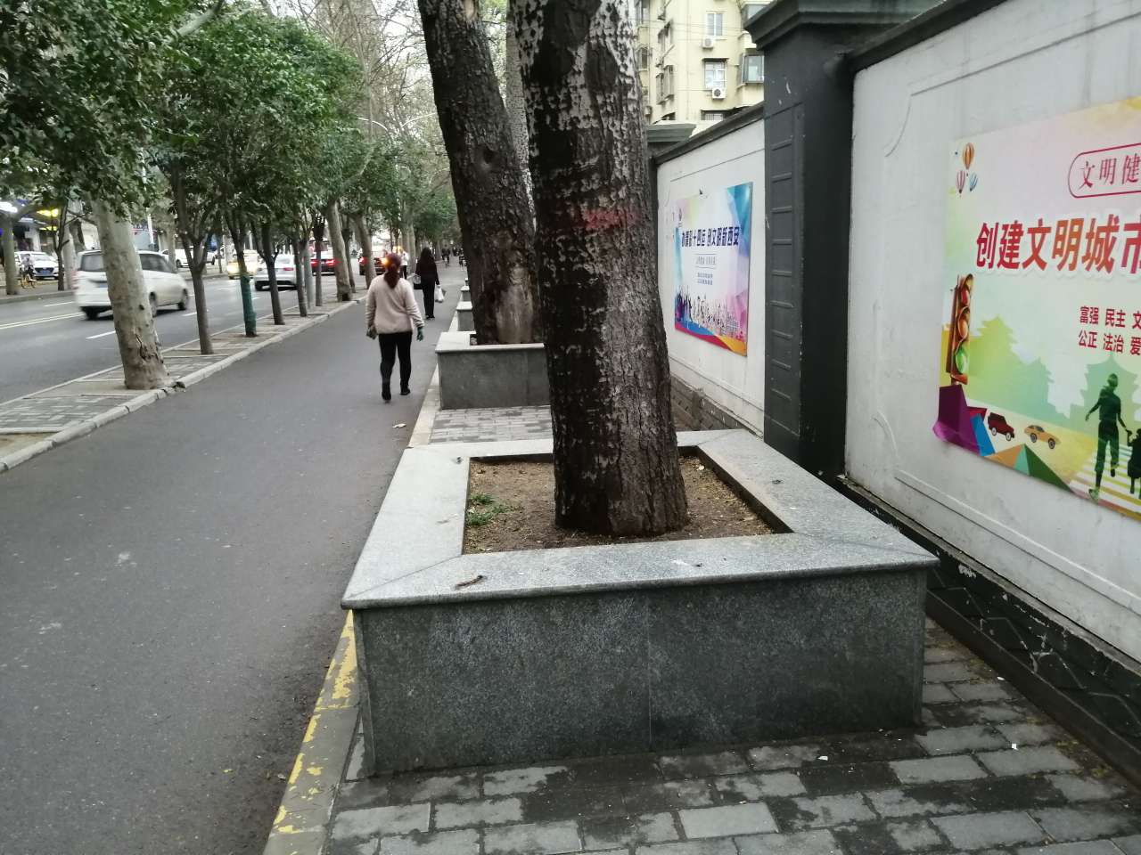 碑林区文艺南路这段人行道咋走?围墙没有占道许可证,里边没有施工应该让路于民。#西安交通#